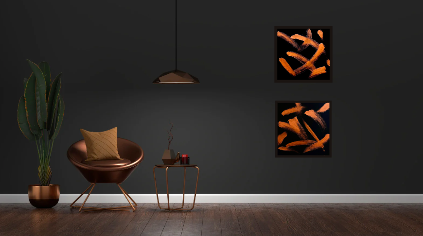 Les reflets dorés, les nuances orangées se détachent sur fond noir comme un souffle bien vivant, sans contraintes, sans limites.