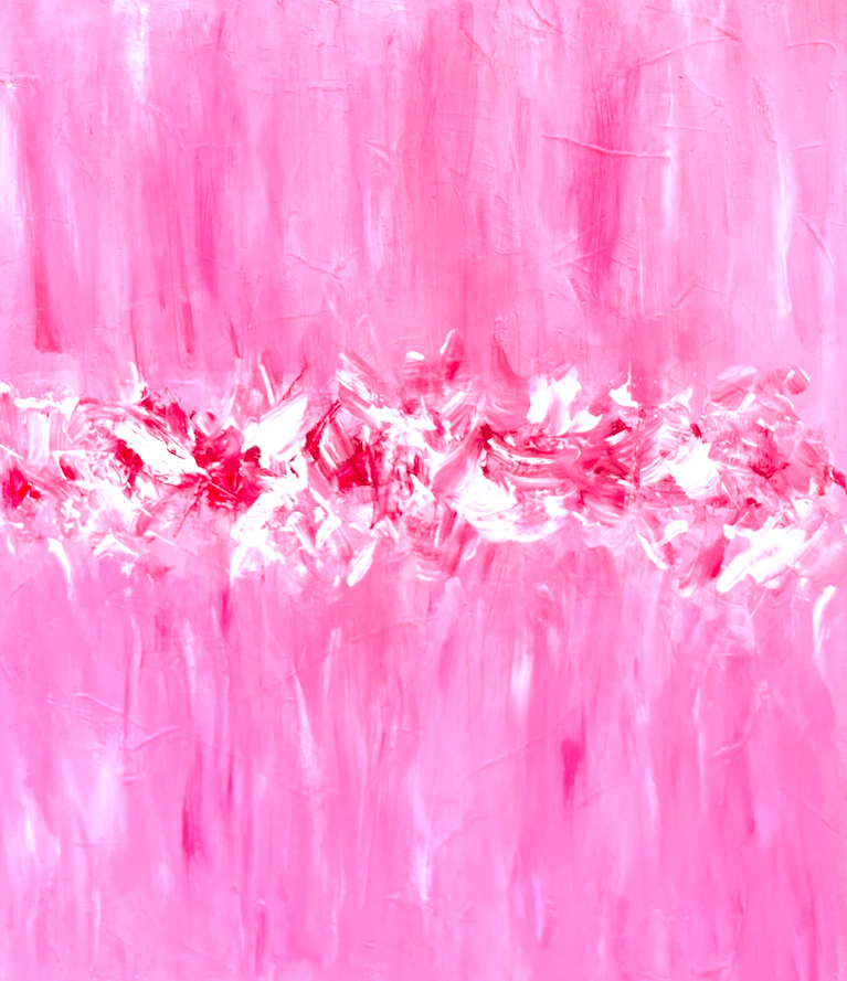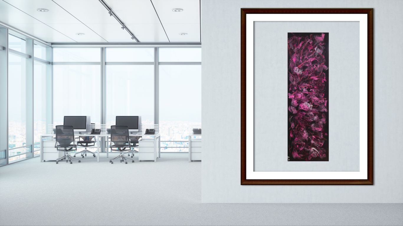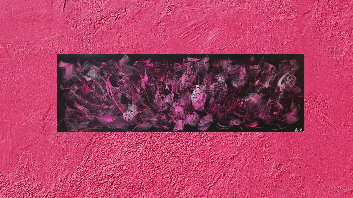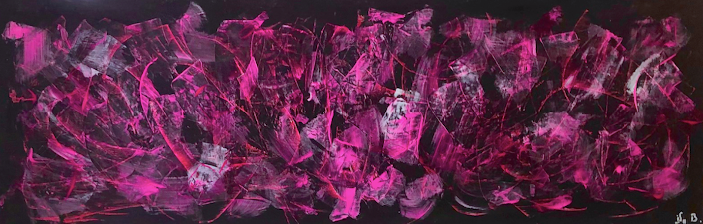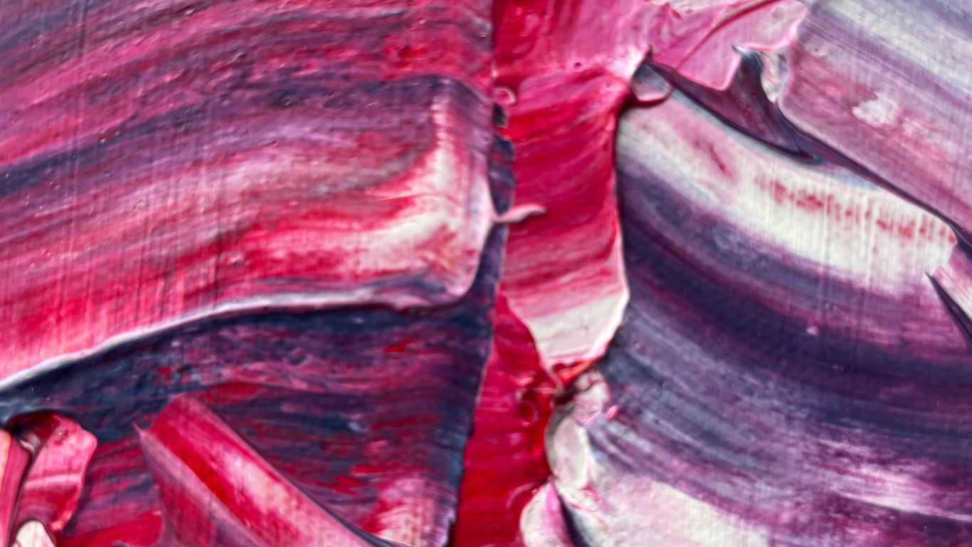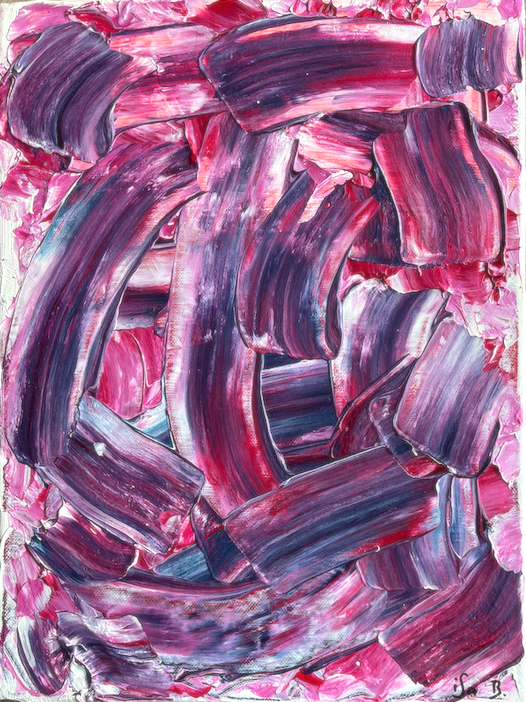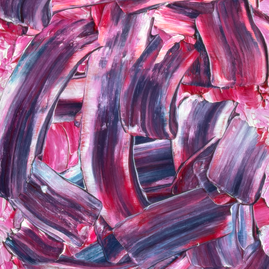 Rouge et violet, passionnément fusionnels dans une composition originale entièrement réalisée à la peinture à l’huile.