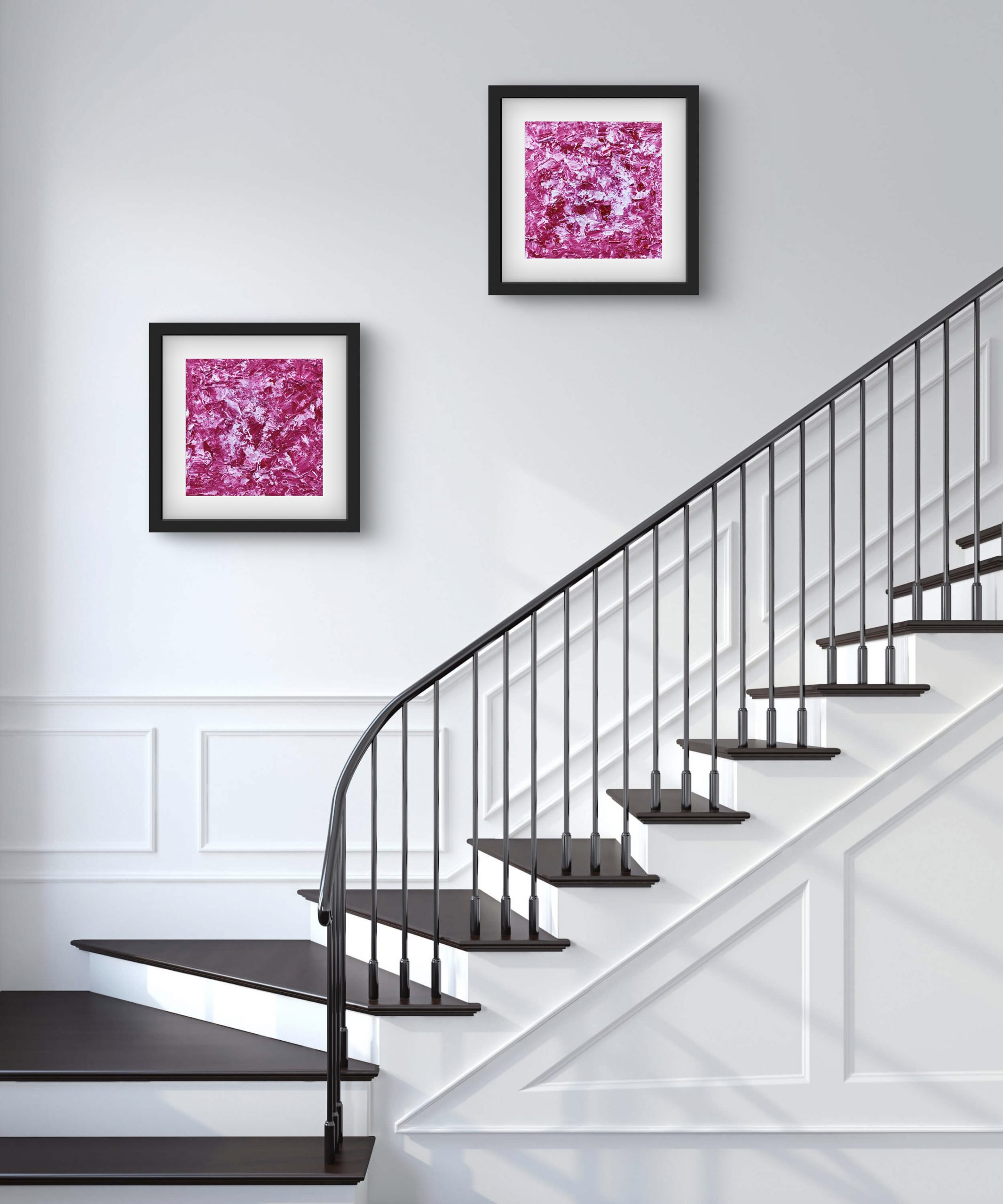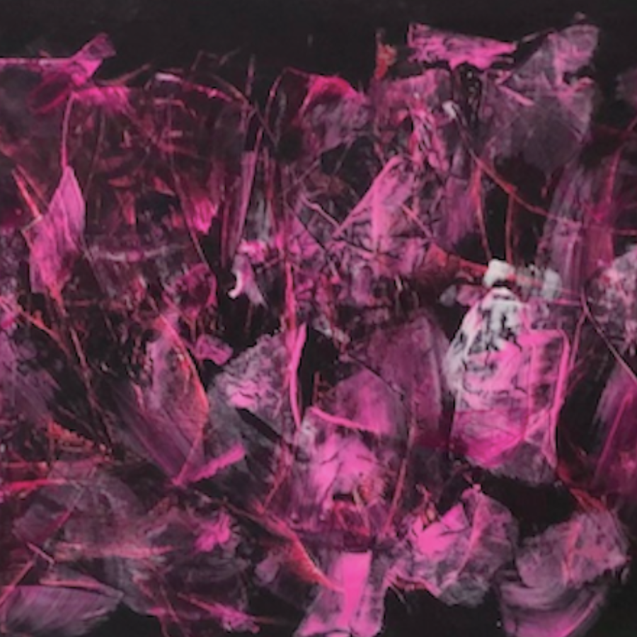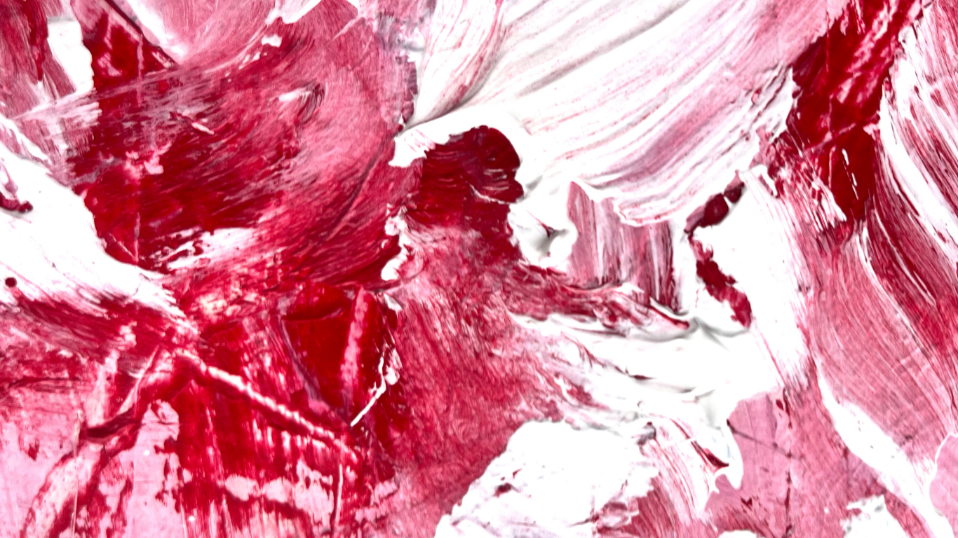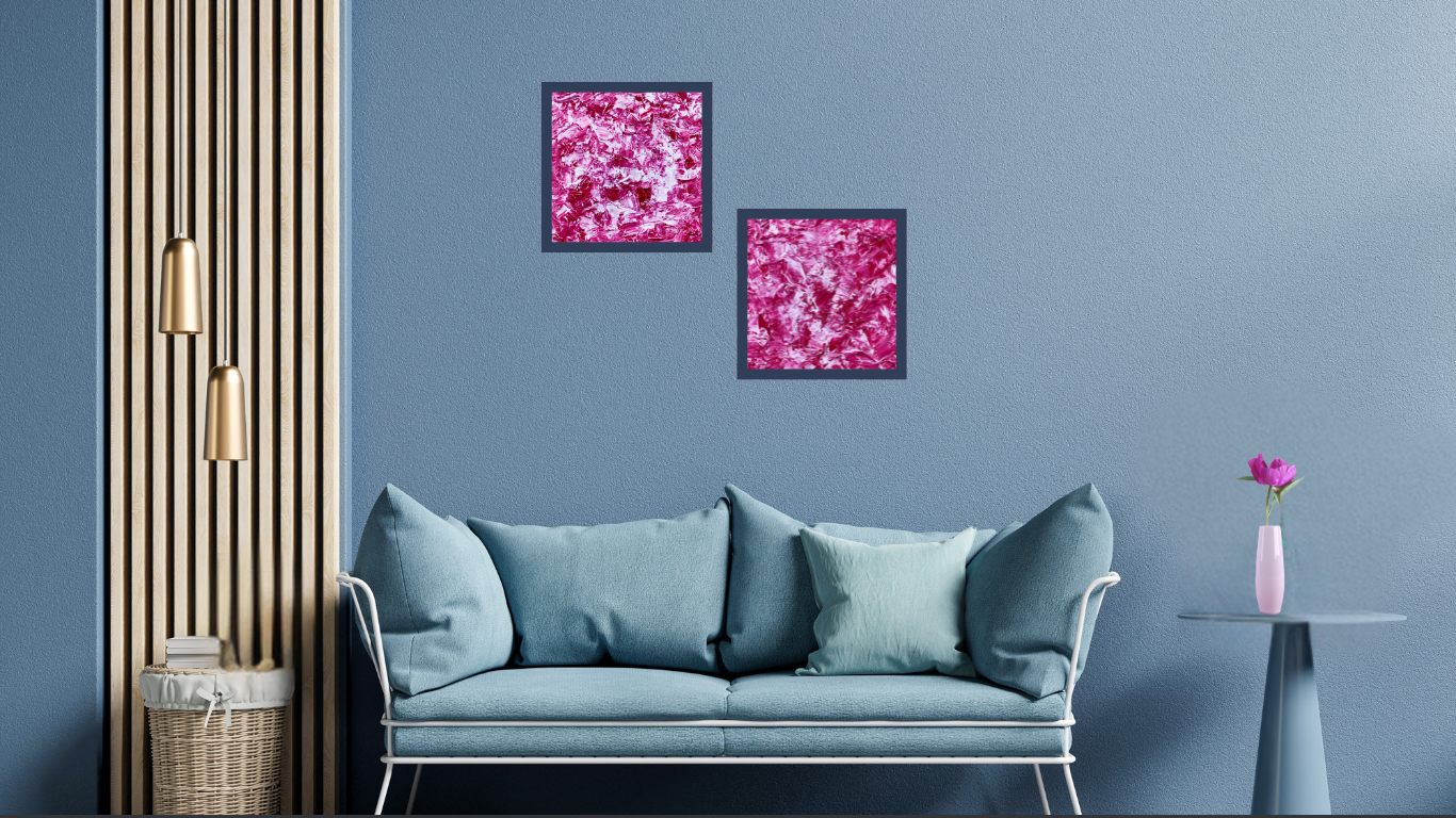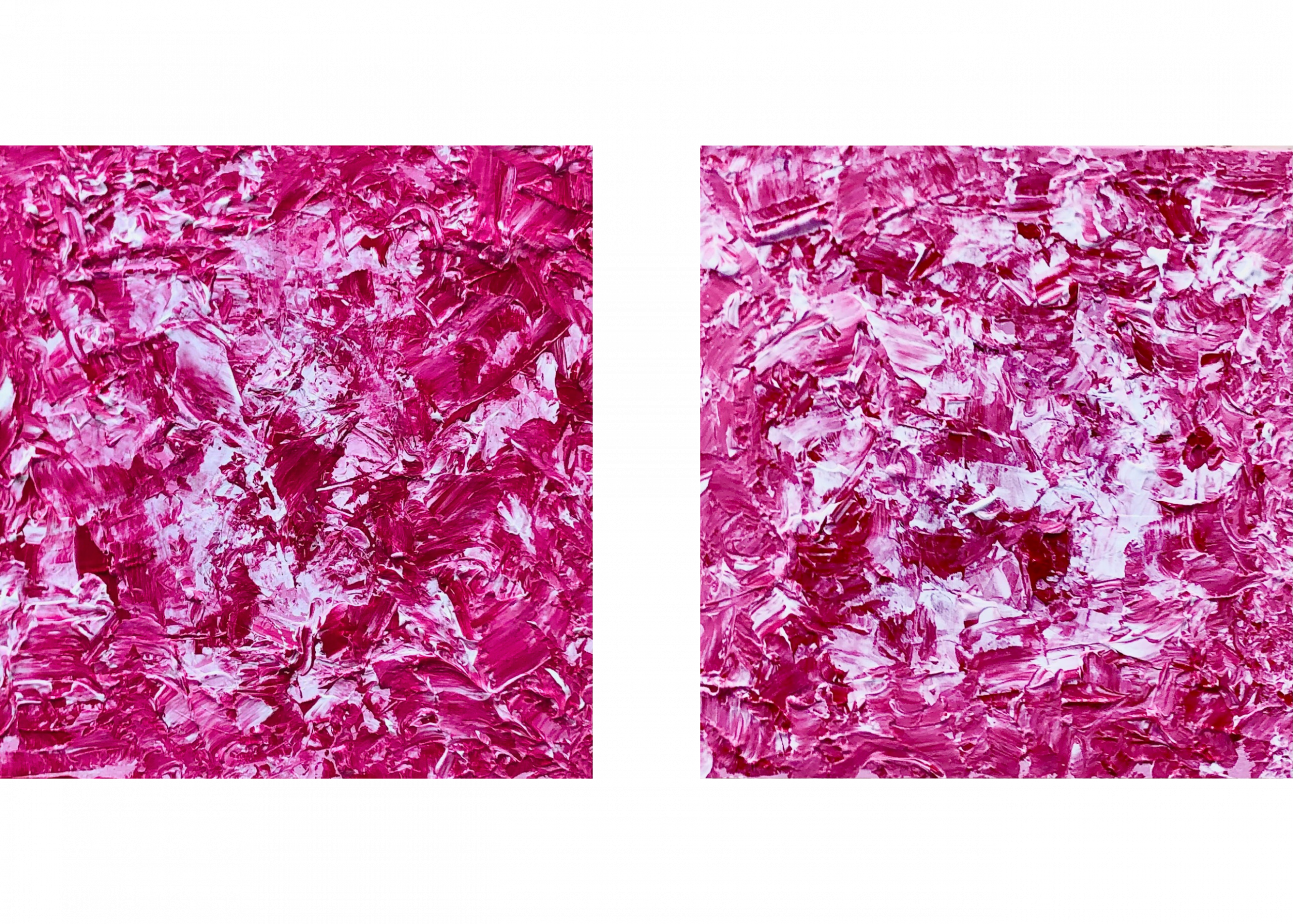 Rouge et violet, passionnément fusionnels dans une composition originale entièrement réalisée à la peinture à l’huile.